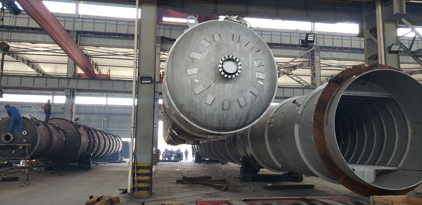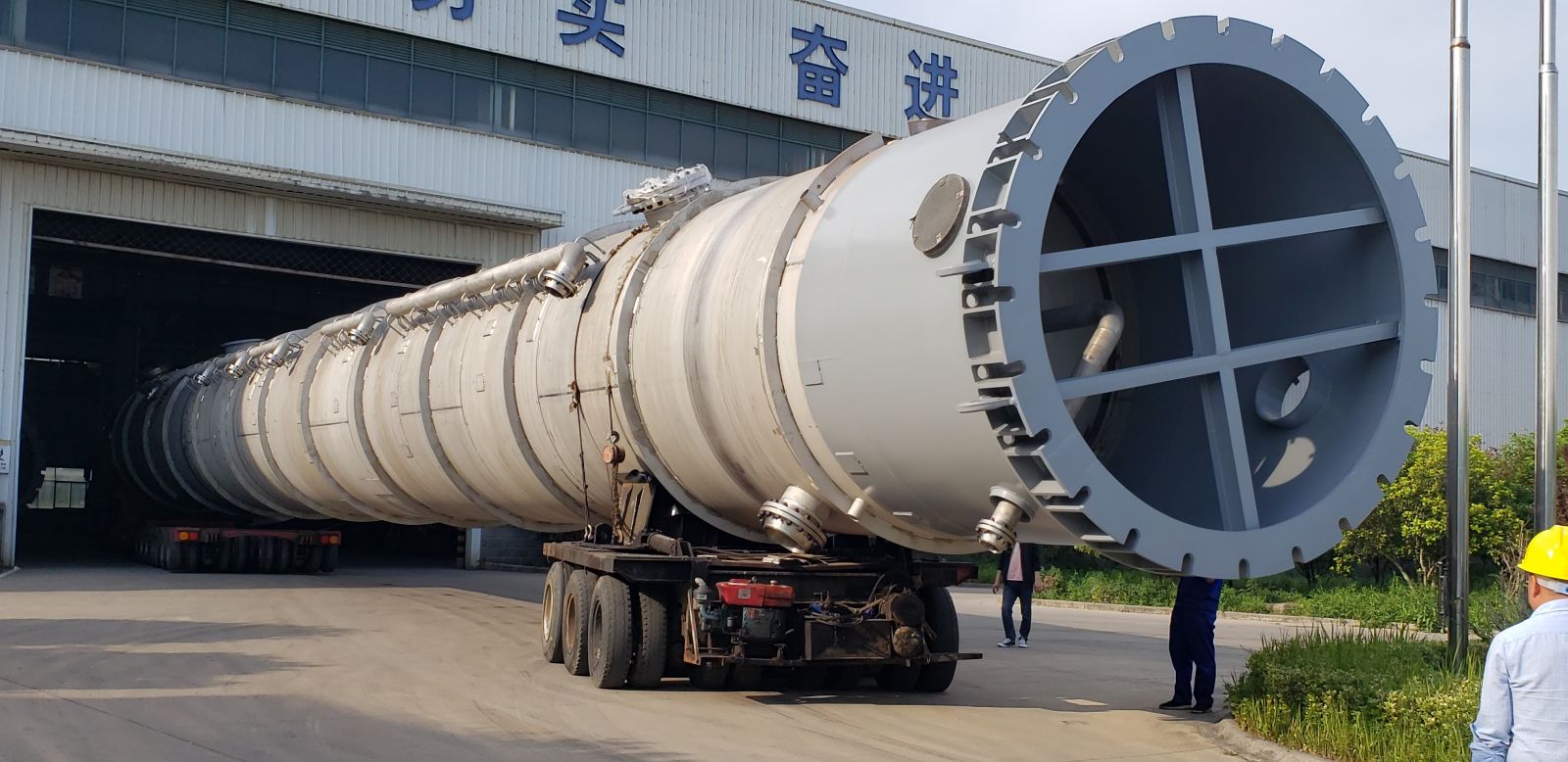 在疫情持續高壓形勢下,我司員工一手抓抗疫,一手趕工期,今天又將兩臺重146噸長達43米的大塔(三脂塔),如期完工,正整裝待發。